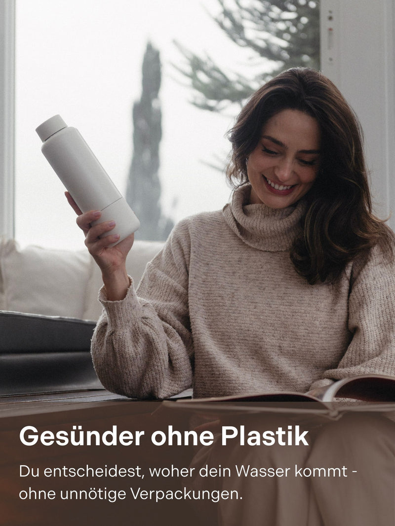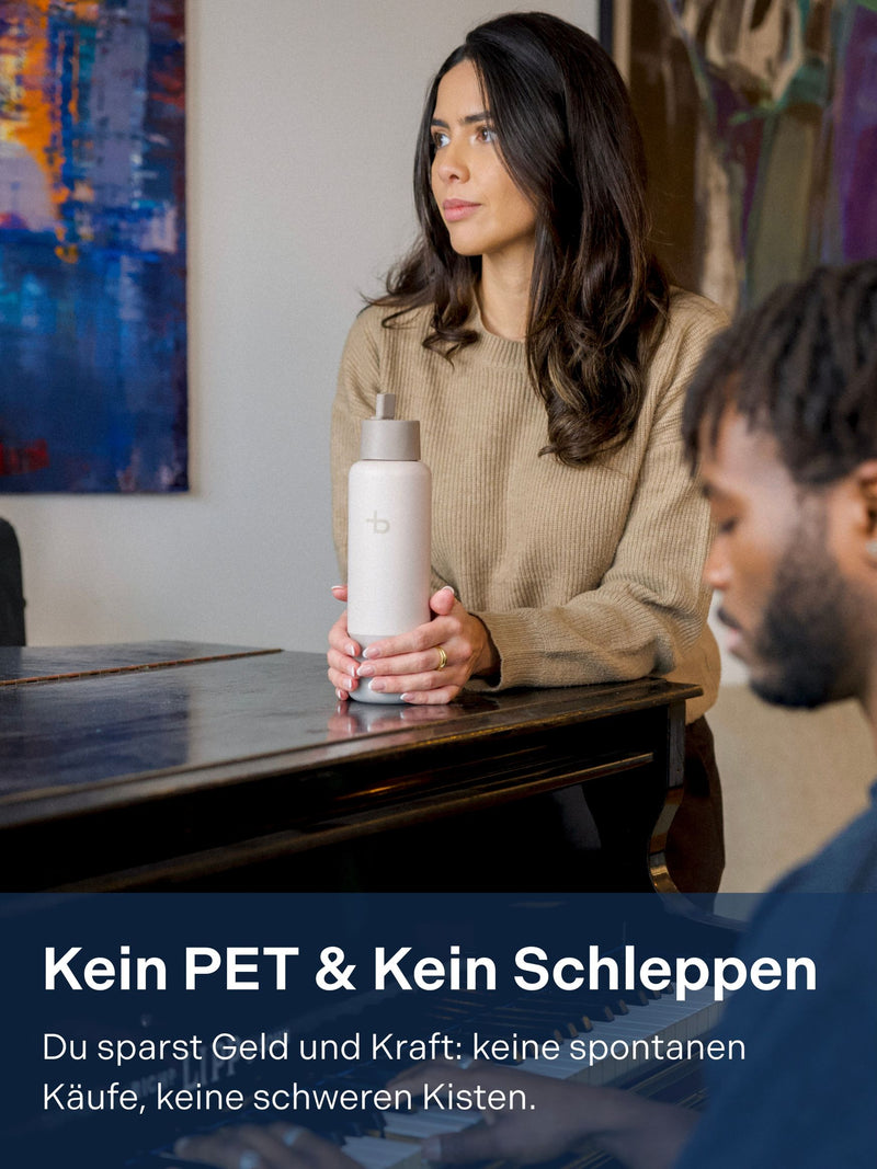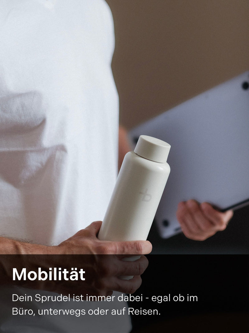 „Sprudelwasser ist einfach das Beste. Unterwegs habe ich frĂŒher meist Wasser aus PET-Flaschen getrunken. Mit Bottleplus kann ich jetzt auch unterwegs sprudelndes Wasser genießen – ganz ohne PET-Flaschen. Klare 5-Sterne-Empfehlung!“