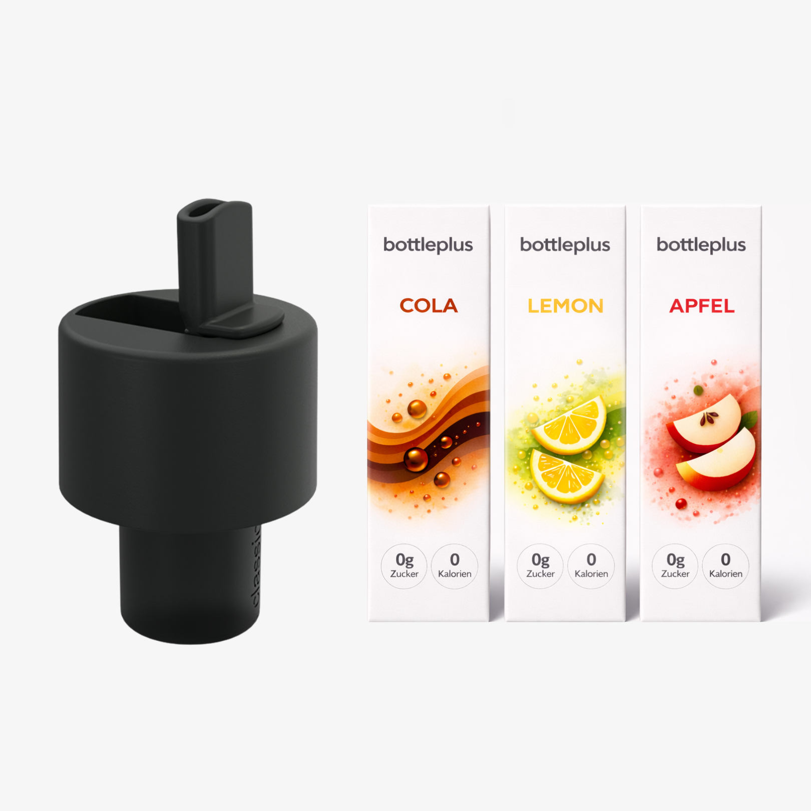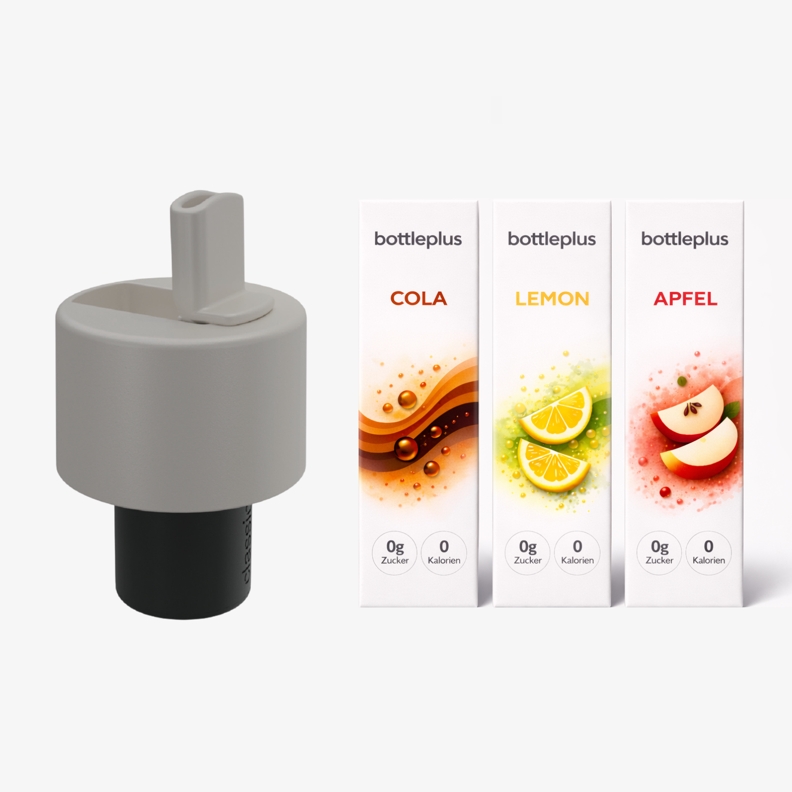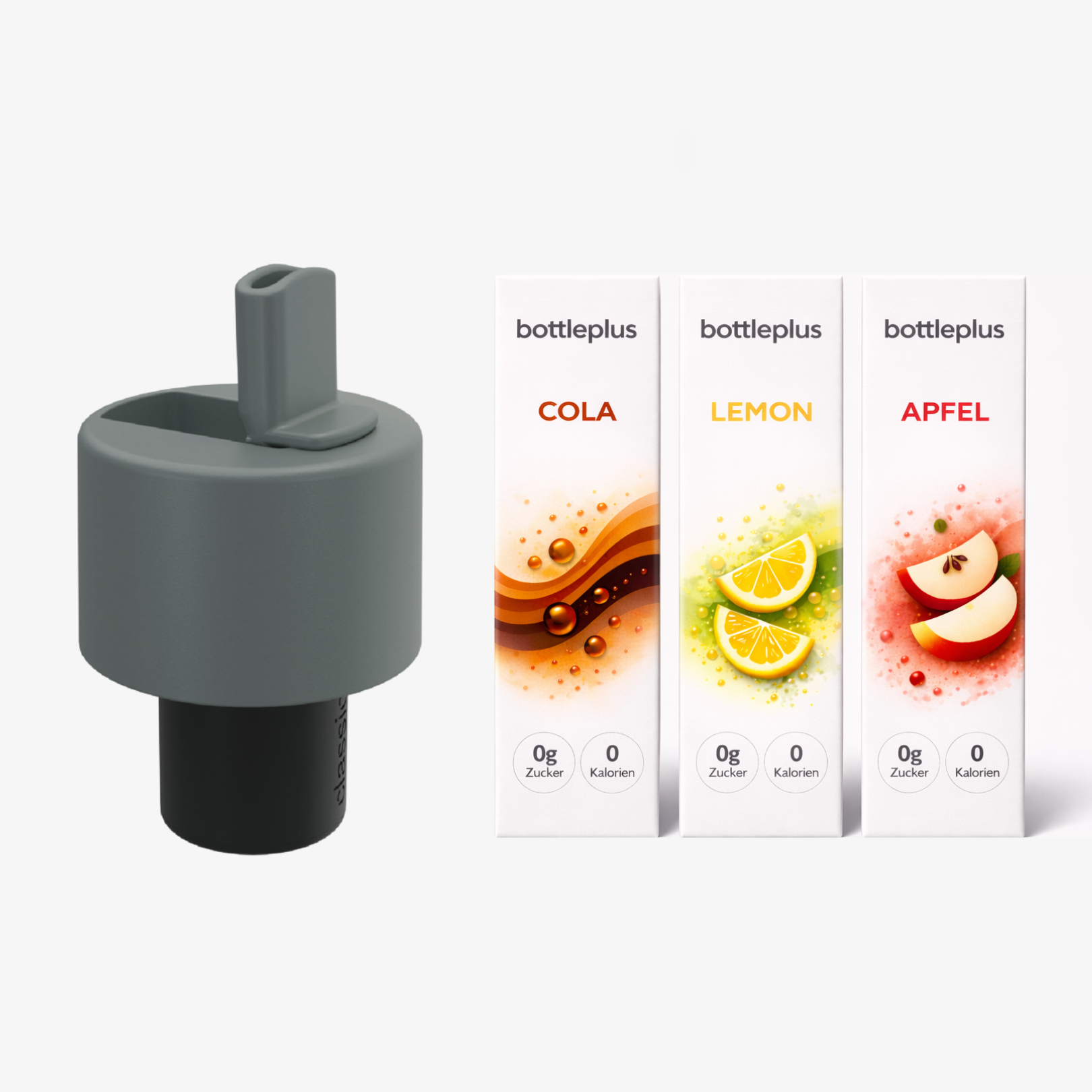 Die Geschmackslösung ist unsere Neuentwicklung für deine bottleplus Flaschen. Sie besteht aus einem Geschmacks-Deckel und Geschmacks-Kapseln (kleine, austauschbare Sirup-Kapseln). So kannst du dein Wasser Schluck für Schluck veredeln – ohne Kleckern, ohne zusätzliches Mischen.
