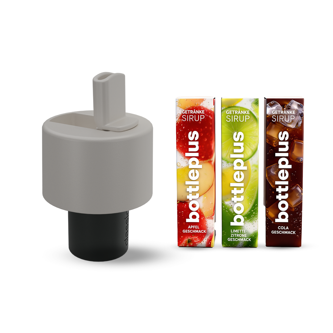 Die Geschmackslösung ist unsere Neuentwicklung für deine bottleplus Flaschen. Sie besteht aus einem Geschmacks-Deckel und Geschmacks-Kapseln (kleine, austauschbare Sirup-Kapseln). So kannst du dein Wasser Schluck für Schluck veredeln – ohne Kleckern, ohne zusätzliches Mischen.